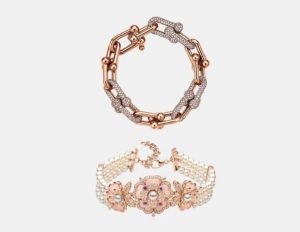 أساور ذهب وردي مرصعة بالألماس تناسب المرأة العاملة