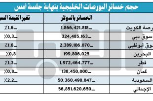 Share منيت الأسواق الخليجية امس بخسائر حادة بلغت 56.8 مليار دولار، وذلك بالتزامن مع وصــول …